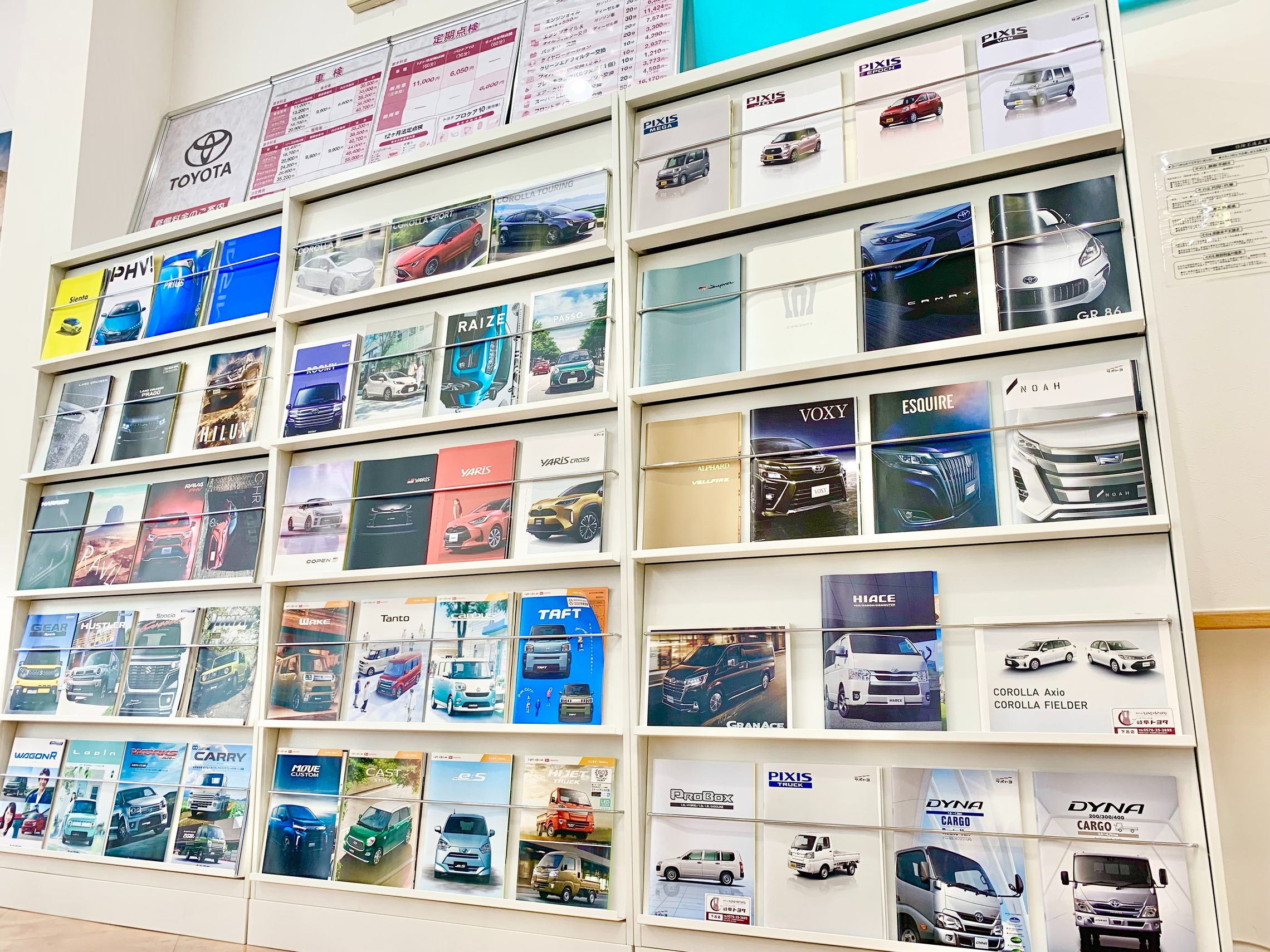看板とカタログの棚が