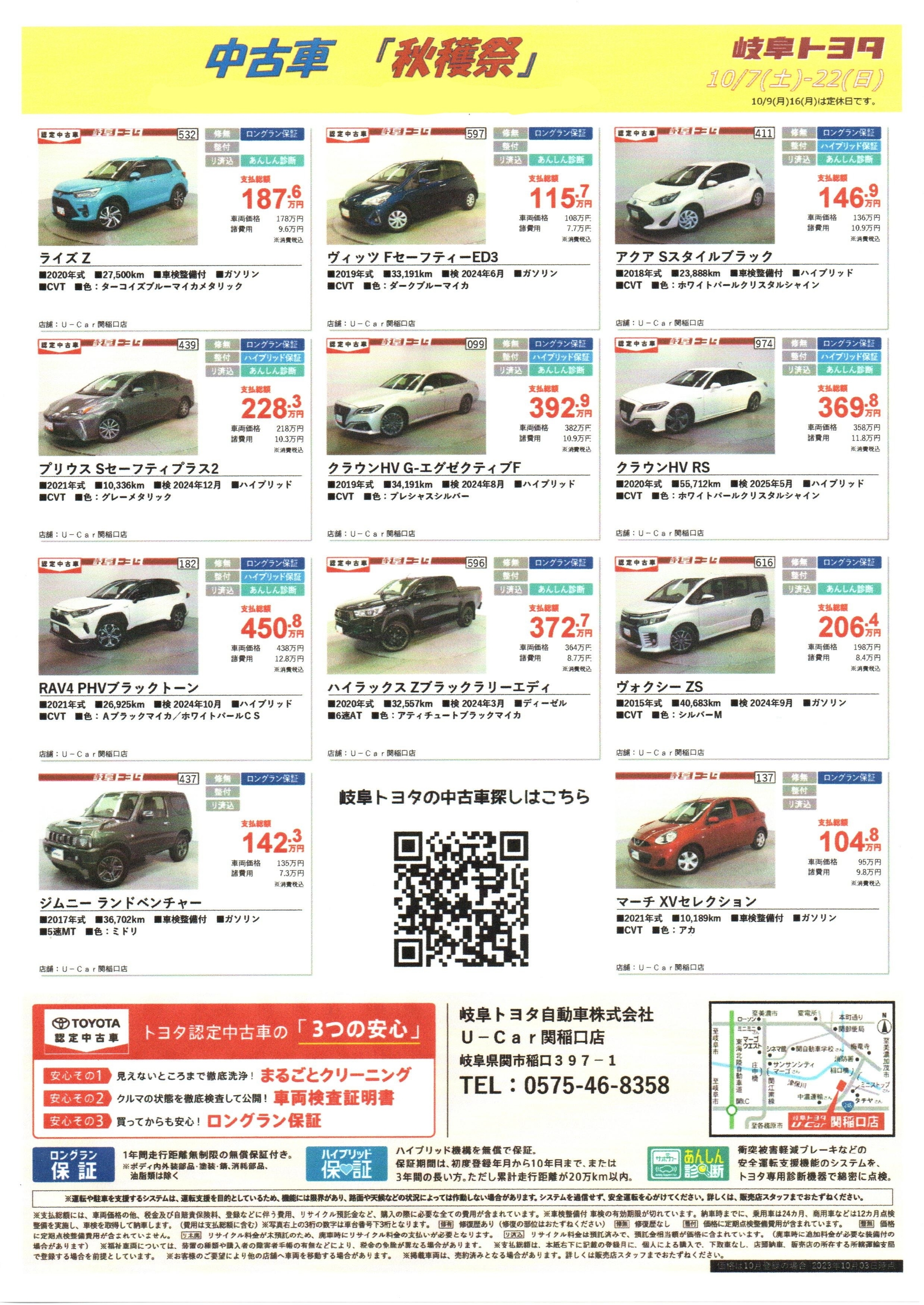 🎃中古車『秋穫祭』🎃 U-Car関稲口店