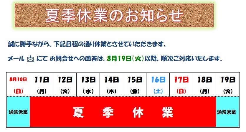 🌴夏季休業🌴のお知らせ -U-Car関稲口-