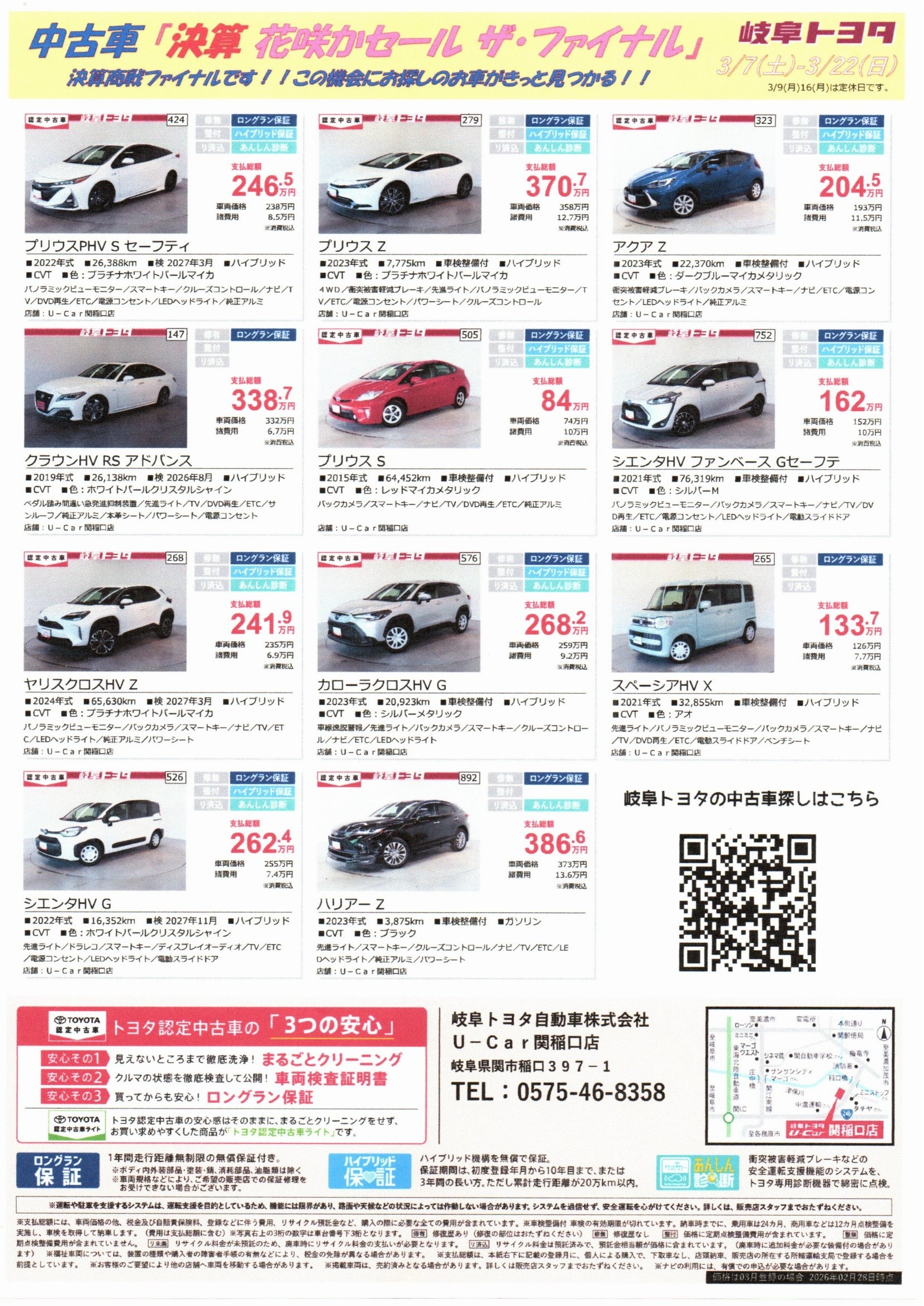 中古車 🌸🌸『決算 花咲かセール THE FINAL』🌸🌸 U-Car関稲口店
