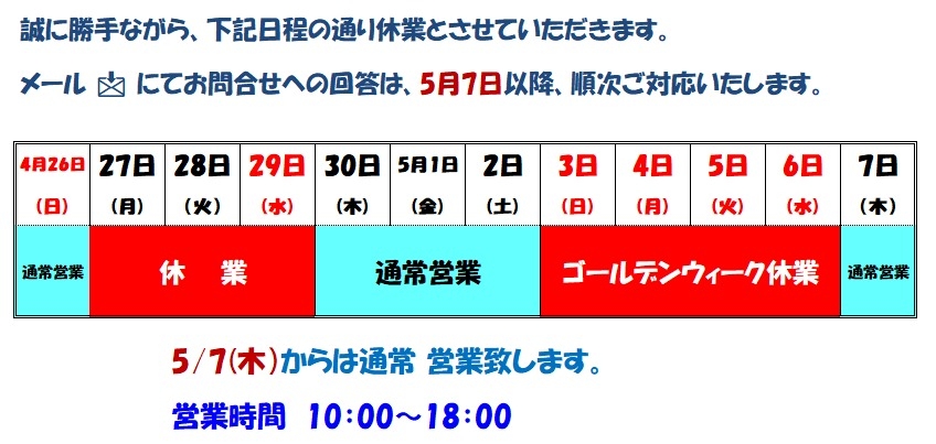 🎏ゴールデンウイーク 休業期間のお知らせ🎏 U-Car関稲口 2026.04.25 岐阜トヨタ U-Car関稲口店 ゴールデンウイーク休業 ゴールデンウイーク休業期間のご案内 💁♂️事故等の緊急時は、下記までお問い合わせ下さい👩 🙇♂️ご不便をおかけしますが宜しくお願い致します🙇♀️ 前の記事へ 店舗ブログ一覧に戻る 次の記事へ