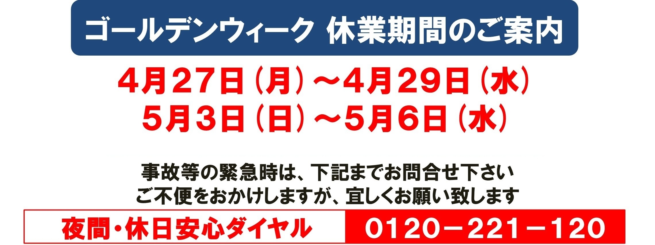 ゴールデンウイーク休業のお知らせ🎌 ユーカー北方店