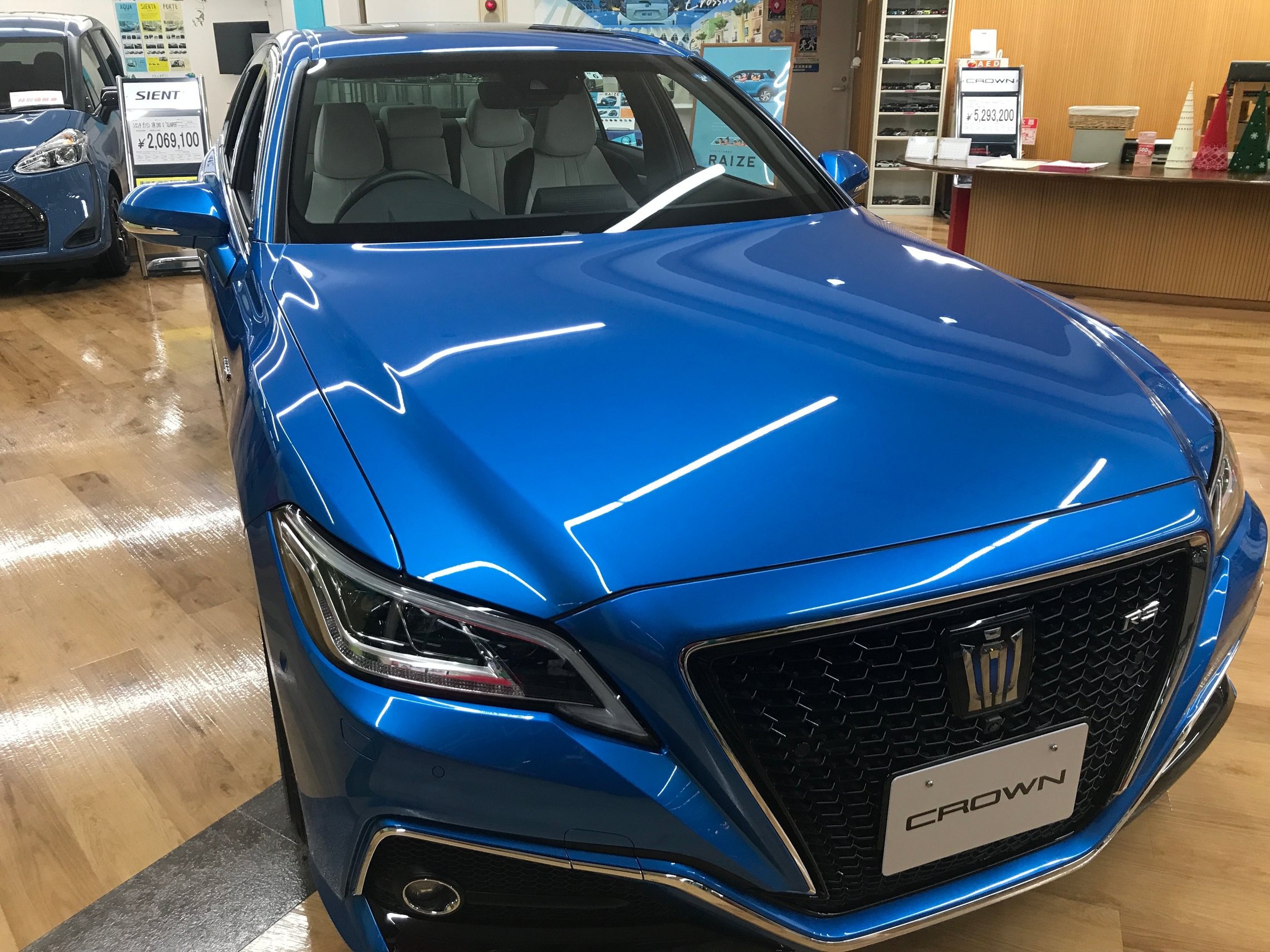 クラウンのジャパンカラー天空(ソラ)色が展示中です🚘