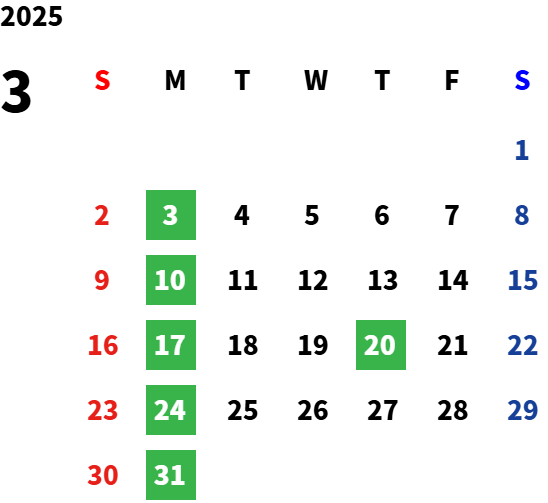 営業日カレンダー