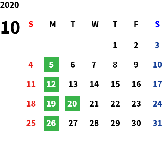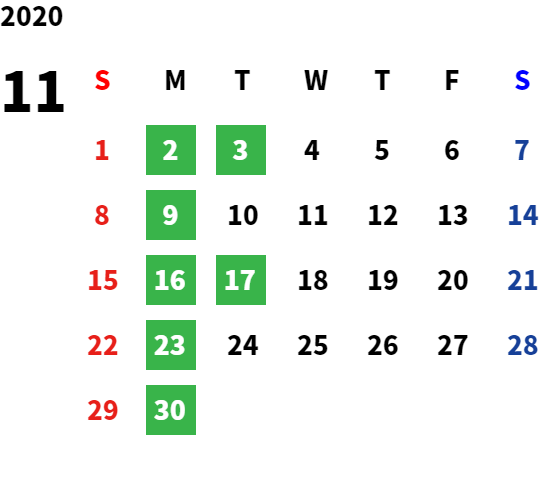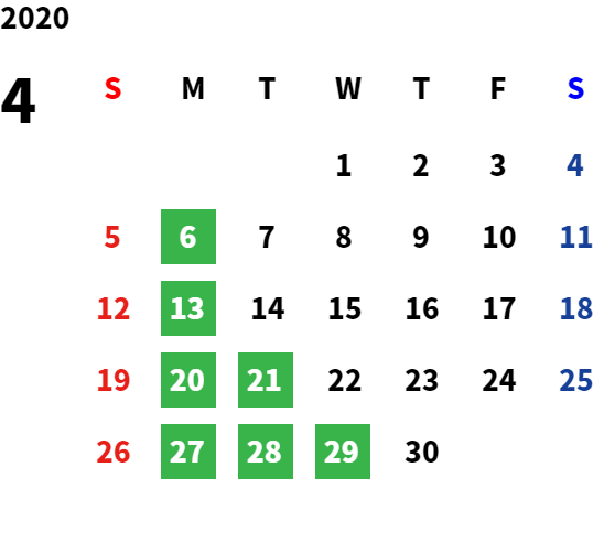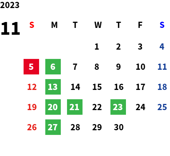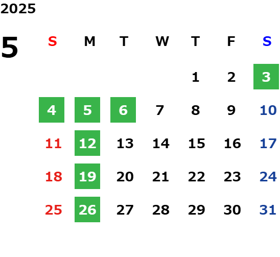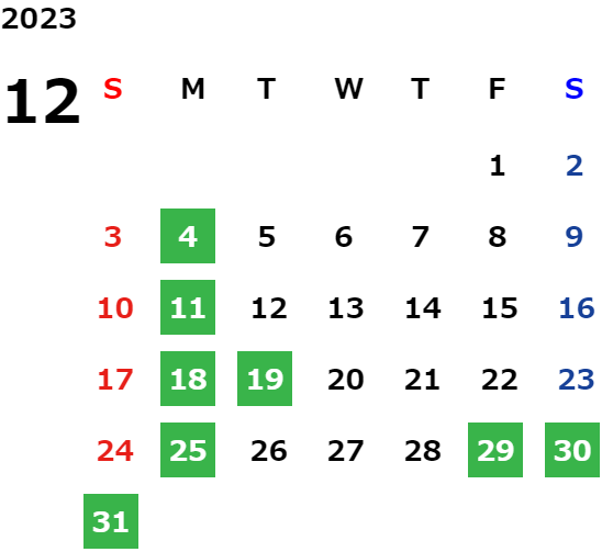 営業日カレンダー