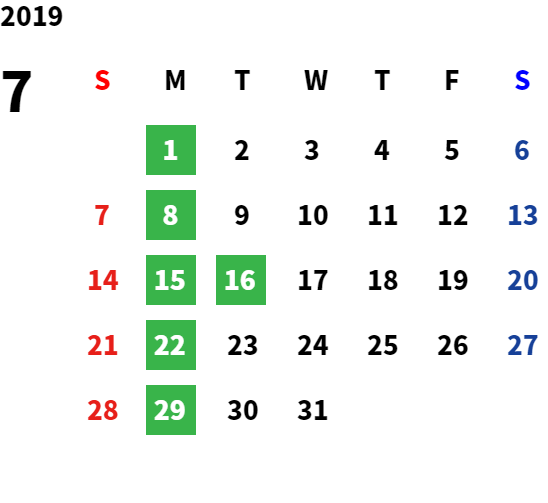 毎週月曜日